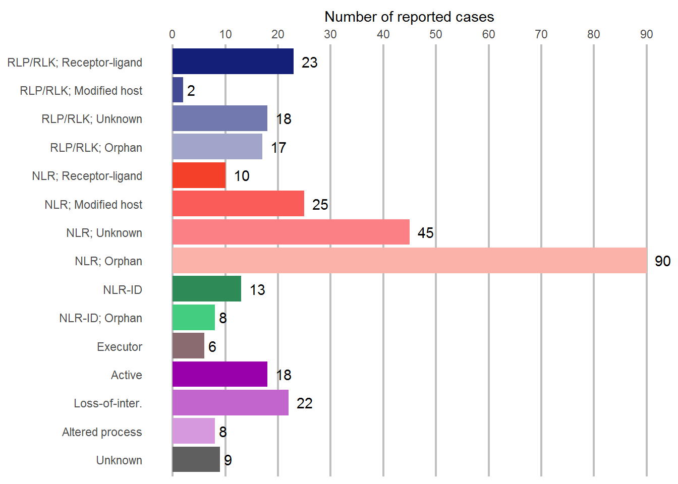levels = c("RLP/RLK; Receptor-ligand", "RLP/RLK; Modified Host", "RLP/RLK; Unknown mechanism", "RLP/RLK; Orphan Receptor", "NLR; Receptor-ligand", "NLR; Modified Host", "NLR; Unknown mechanism", "NLR; Orphan Receptor", "NLR-ID", "NLR-ID; Orphan Receptor", "Executor", "Active", "Loss-of-interaction", "Reprogram", "Unknown"),