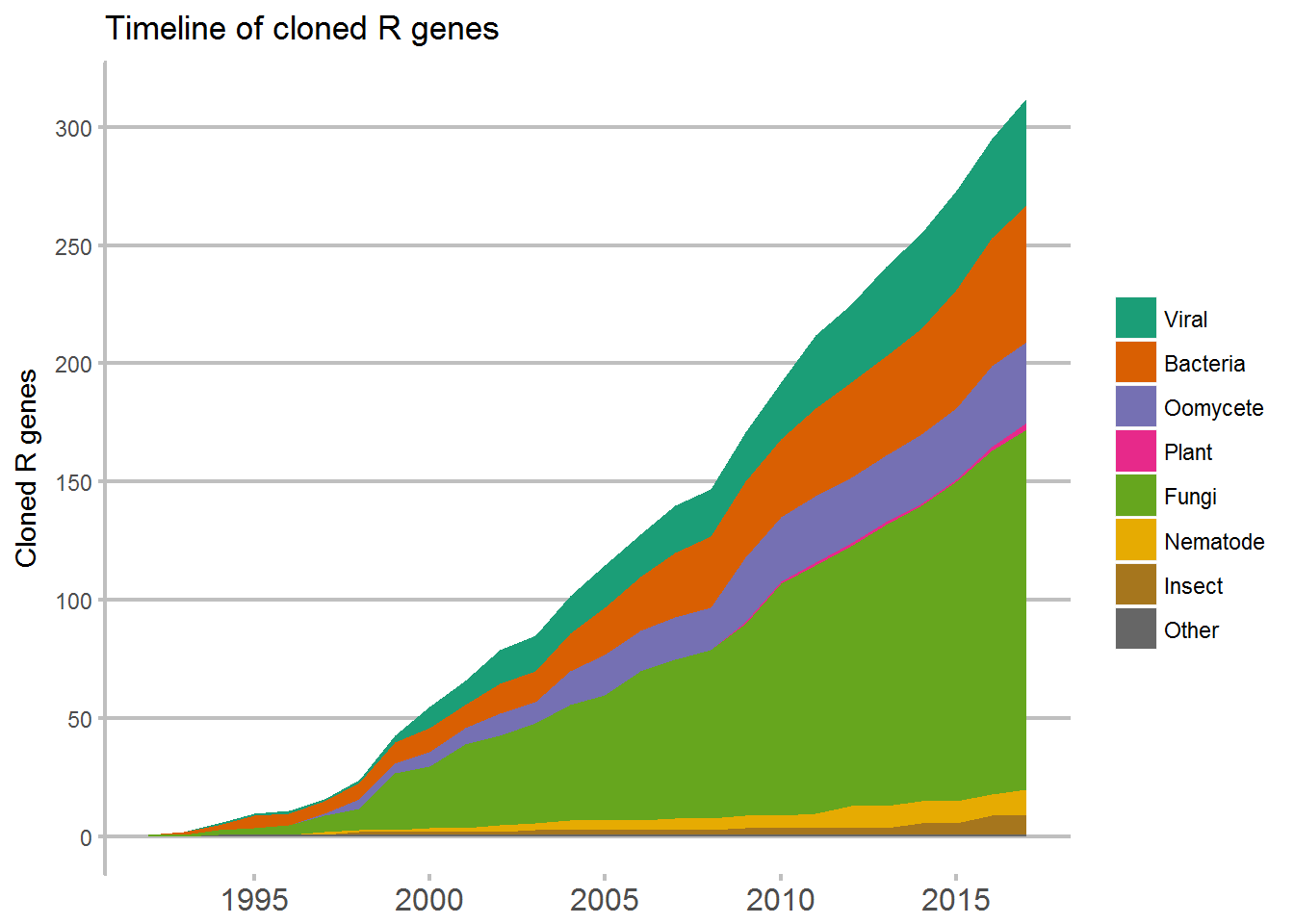 Likewise, in this timeline of cloned R genes against different types of pathogens we may see a reflection of which pathogens have been important to study, or a research bias.